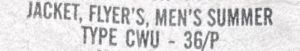 「JACKET, FLYER’S, MEN’S, SUMMER / TYPE CWU-36/P」